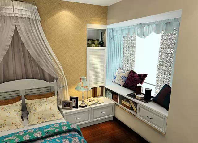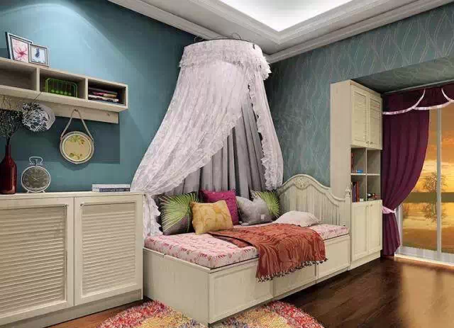 ▲把窗帘换成淡蓝色碎花,和碎花床品搭配十分和谐,挂上帷帐,让整个空间变得更为柔和。