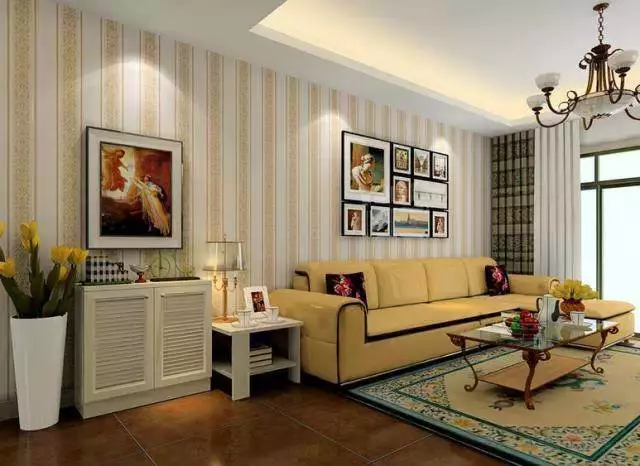▲优雅花纹壁纸客厅的简欧风格很相搭,更显典雅。