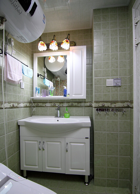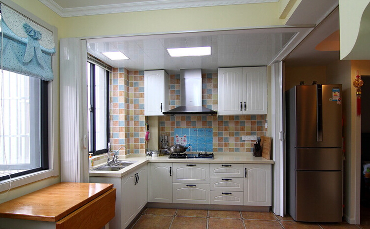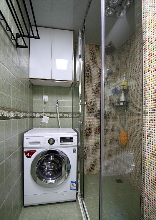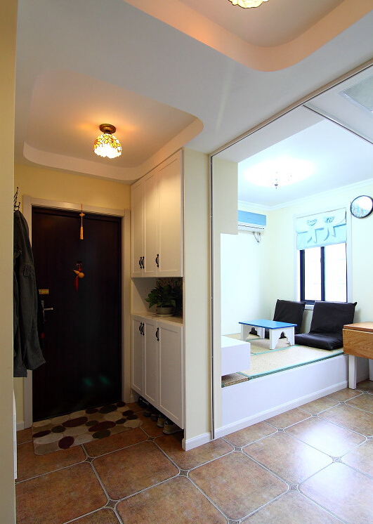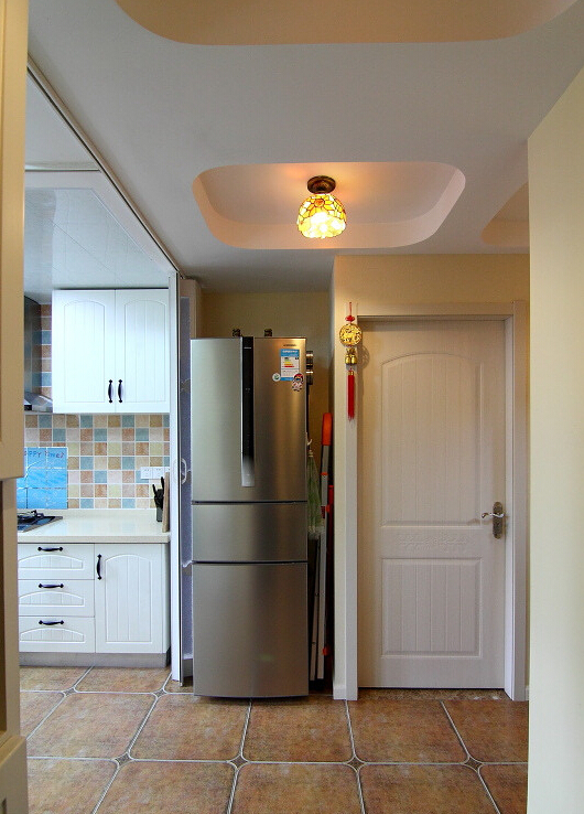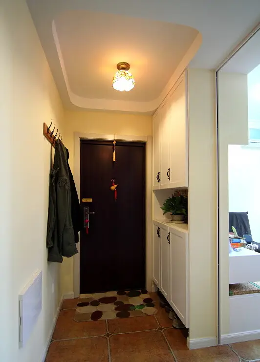 进门的玄关,做了一个很大的鞋柜,冰箱放在了对门的位置