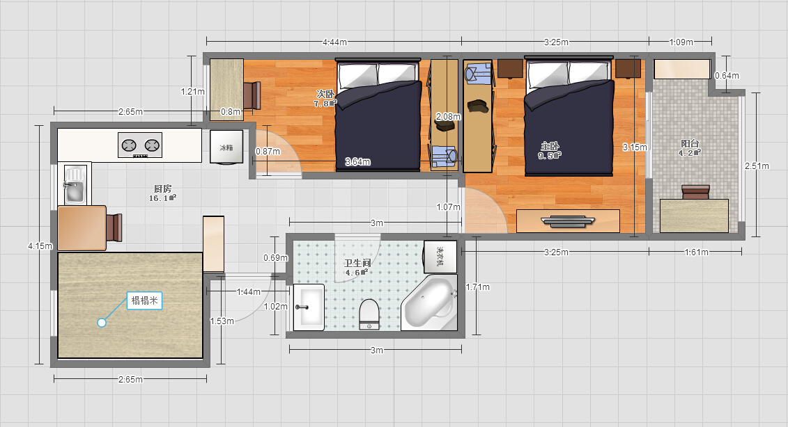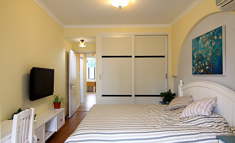 主卧,我们把衣柜的空间往小房间推了,并且把阳台包了进来,这样看着是不是感觉不小啊