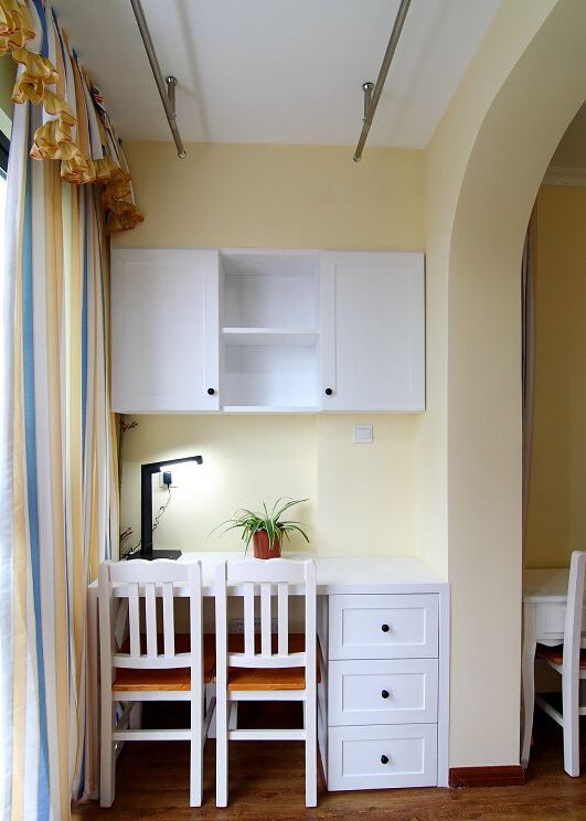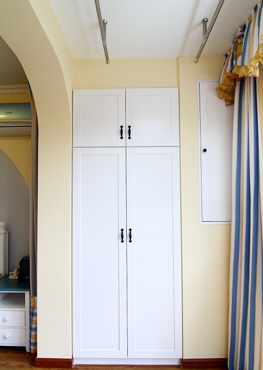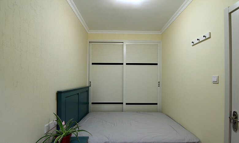 最后,是这个隔出来的小房间。由于要放过道,所以里面的宽度实在是有点窄,只能放下床的宽度,到衣柜拿东西要在床上拿的,窗台边的书桌还没有买