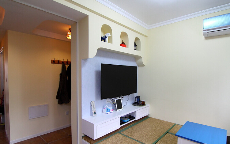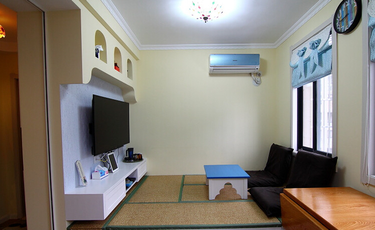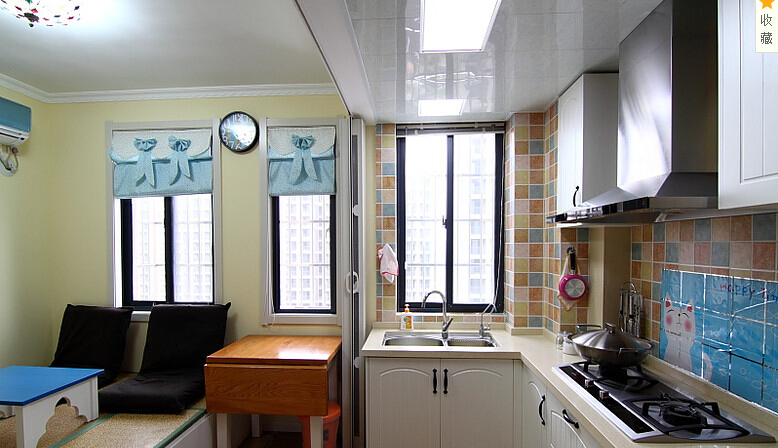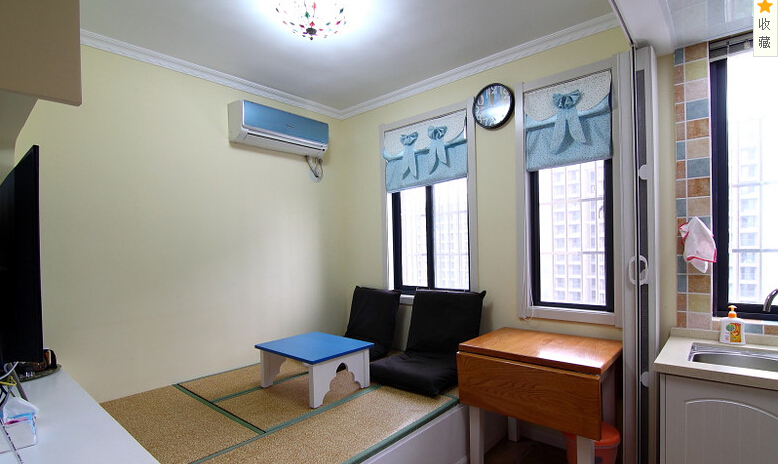 厨房和边上的榻榻米,这是一个好似开放的空间。可以坐在上面看电视,来个客人还可以当床。